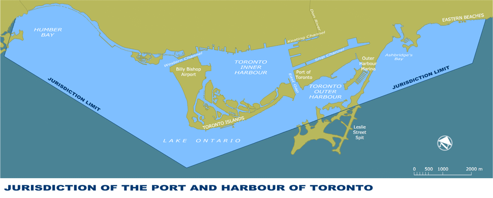 the Toronto Port Authority a compétence sur toutes les eaux du port et du havre de Toronto, ce qui inclut l’arrière-port et l’avant-port – tous deux très fréquentés – et leurs environs.